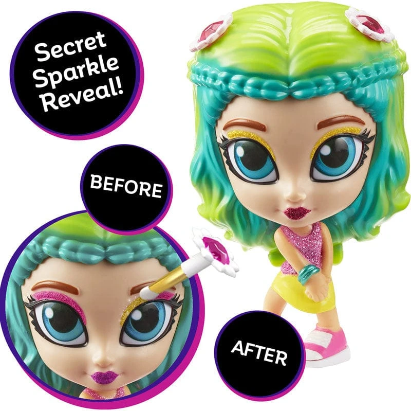 Glam la tua bambola! Ogni bambola Shimmer N Sparkle InstaGlam include un applicatore in spugna rimovibile e un applicatore a pennello che sbloccano una rivelazione segreta di scintillio. Usa l’applicatore a pennello per spazzolare semplicemente le palpebre e le labbra della bambola con l’acqua per rivelare un trucco super scintillante e glamour sulla bambola stessa! Ogni bambola contiene anche uno scomparto per il trucco nascosto per condividere il tuo stile. Apri la bambola InstaGlam per rivelare un trucco segreto con un vero trucco e uno specchio per le bambine per creare il proprio stile di bellezza! Ogni tavolozza di trucco presenta una combinazione di colori per il trucco di tendenza, tra cui 1 mini rossetto, 2 ombretti, 2 lucidalabbra, progettati per creare l’effetto perfetto. Vendita in Assortimento Casuale, spedizione unitaria.