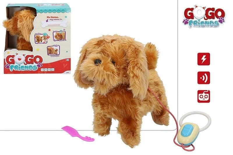 Simpatico Cagnolino Elettronico che grazie al suo Guinzaglio dotato di Pulsanti, Cammina scodinzolando e Abbaia. +3 Anni, dimensioni circa 25*13*25cm