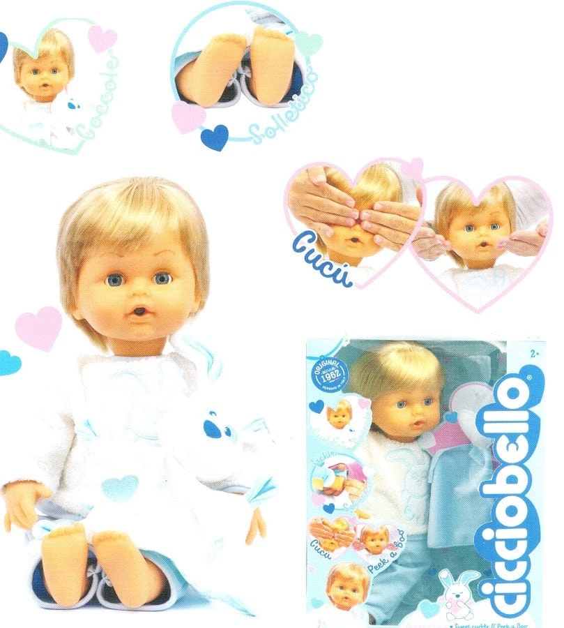 Cicciobello Coccole e Cucù Giochi Preziosi bambola Interattiva, il Bambolotto che come i bambini veri adora le coccole, il solletico e le sorprese! Cicciobello ride e fà dei versi quando si toccano le sue manine e scoppia in una risata quando gli si fa il solletico ai piedini, la bambola gioirà di felicità quando si coprono e si scoprono i suoi occhi giocando a CuCù. Il Bambolotto Coccole e Cucù sà anche piangere, ma sarà sufficiente dargli il ciuccio per calmarlo. La confezione Include Bambola CiccioBello da 40cm, Ciuccio e DouDou, batterie incluse, età +2 Anni. Novità Giocattolo Natale 2022