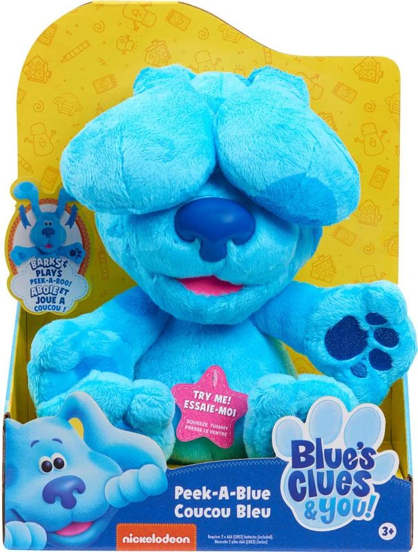 Blues Clues e you, Peluche di Blue che fa’ Cucù! Basta premere il suo pancino per farlo Abbaiare e Alzare le Orecchie. I bambini adoreranno giocare a cucù con il loro peluche alto 25 cm, questo adorabile plush del cartone animato blu è realizzato con tessuti super morbidi e presenta anche la tipica impronta di zampa di Blue. Richiede 2 batterie AAA (LR03) (incluse). Età 3+