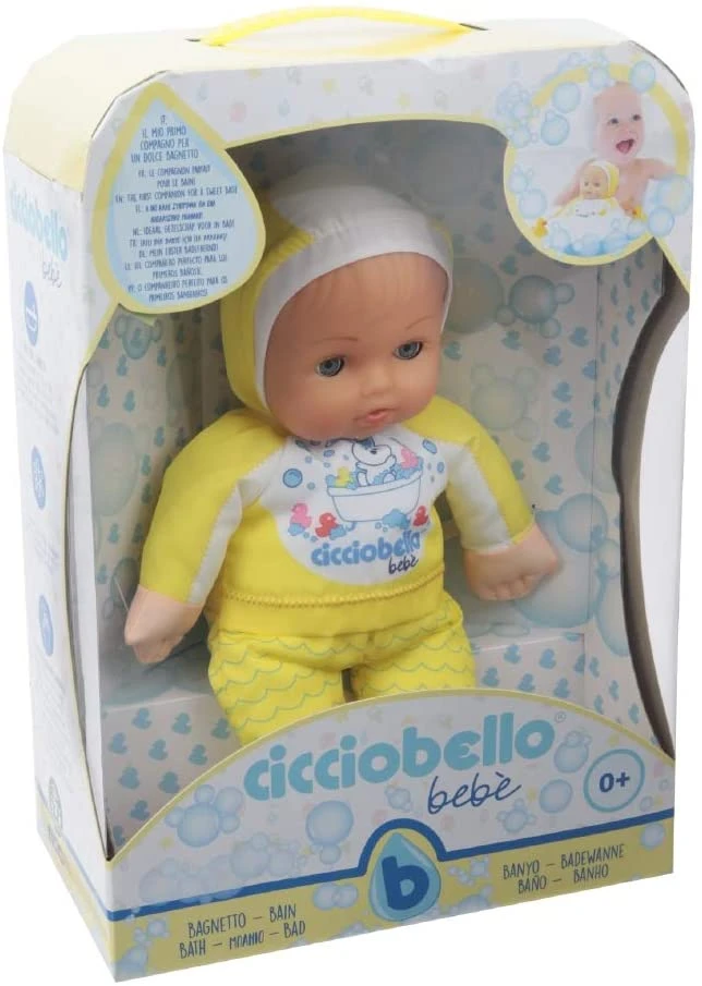 Cicciobello Bebè Bagnetto – Bambola Immergibile Primo Bagnetto, il Bambolotto super soffice adatto dai primi mesi di vita dei neonati. Un bebè giocattolo curato nei dettagli e realizzato con materiali di alta qualità e caratterizzato da un Corpicino Morbido che profuma di Talco. Caratteristiche Principali: Corpicino soffice, con “beans” che asciuga velocemente, Piacevole profumazione di talco, Lavabile a 30° in lavatrice, bambola ideale per coccolare e stimolare il bambino nei primi mesi di vita. Età da 0 mesi