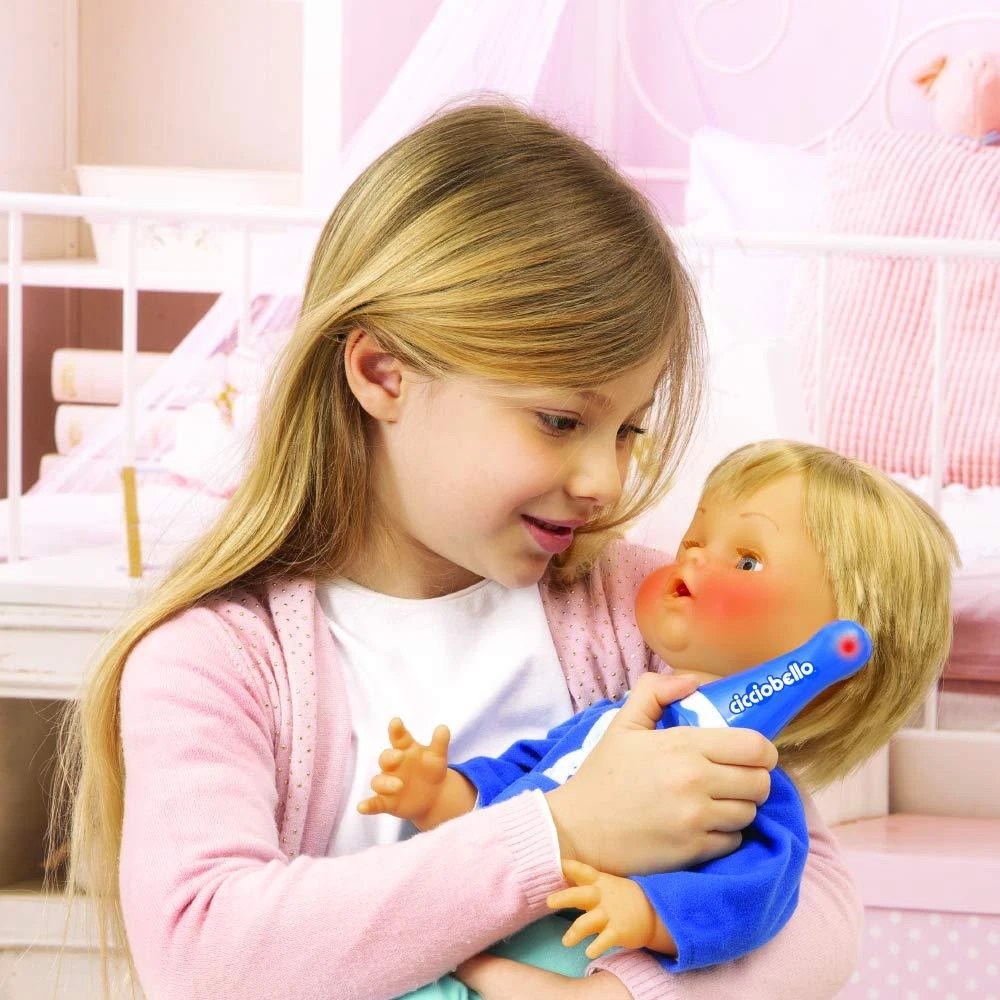 CiccioBello ha la bua deve essere curato, la bambola attraverso gli accessori interattivi attiva modalità di gioco sempre diverse. La confezione include termometro-3 biberon-ciuccio-siringa-stetoscopio. Il Bambolotto Ciccio Bello guarirà ad ogni cura, funzione pianto, funzione febbre, funzione Tosse e molto altro. Nuova Versione deluxe più grande e con nuova vestizione.