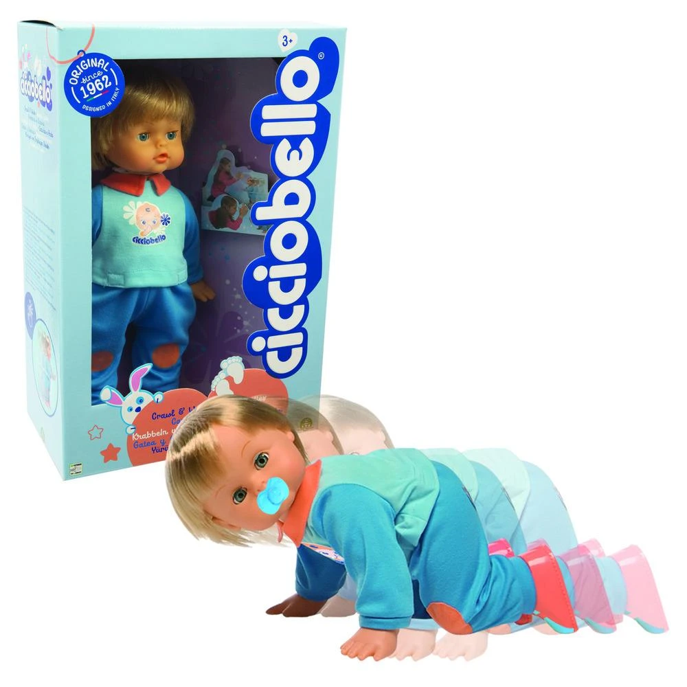 CiccioBello Cammina e Gattona bambola Interattiva, il Bambolotto che battendo le mani Cammina o Gattona Verso di te. Ciccio Bello ha tantissime funzioni, oltre a camminare e gattonare il giocattolo emette dei suoni e dei versetti divertenti. Età Raccomandata dai 2 Anni. Istruzioni per il Funzionamento all’interno del Box.