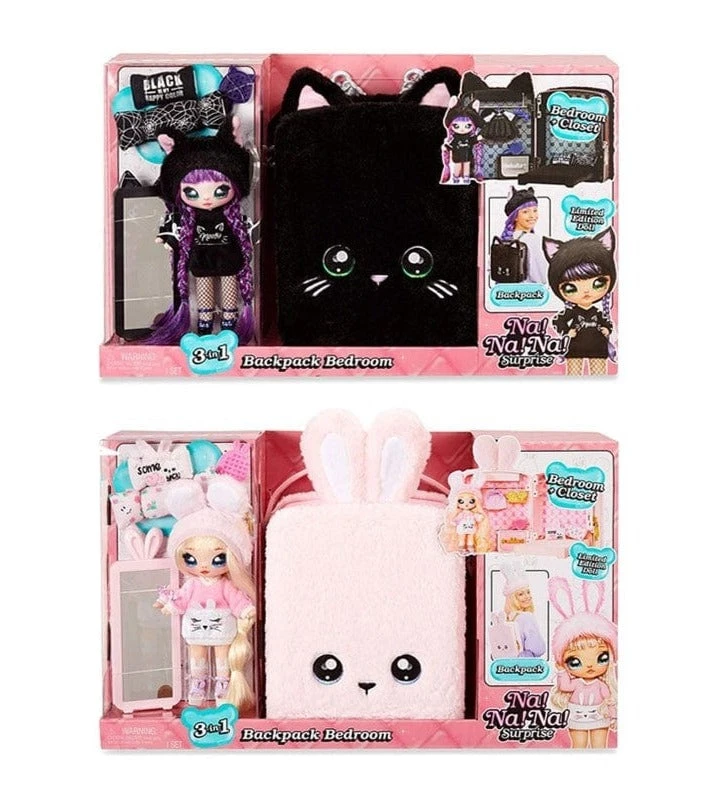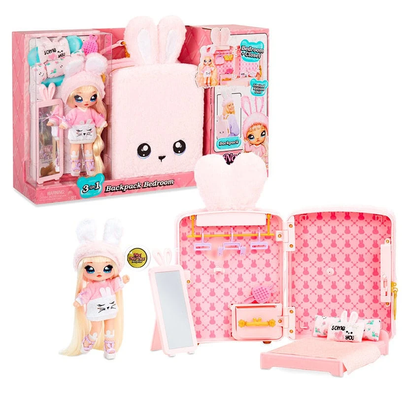Na Na Na surprise Zainetto Stanza 3 in 1, Apri lo Zaino per rivelare una stanza con letto, armadio con cassetti funzionanti, Specchio, accessori Inclusi. La Bambola e i Vestiti sono in Edizione Limitata.