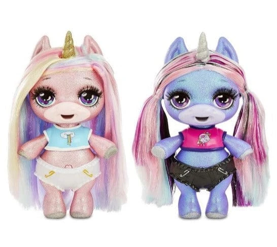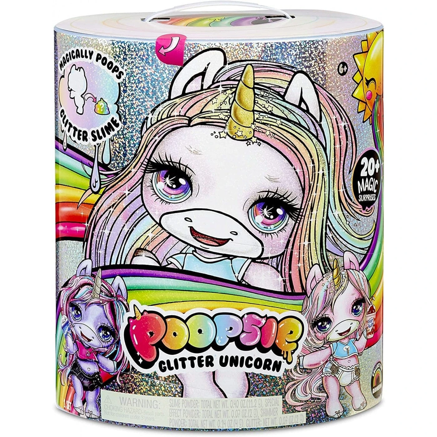 Poopsie Unicorn Surprise Glitter, disponibile il nuovo Unicorno di Poopsie in versione Sparkle Glitterato. Rosa o Viola, con 20 sorprese incluse. Il Poopsie Unicorn è un animaletto con il pancino Magico, dagli da mangiare con il suo magico Cibo e poi fallo sedere sul Vasino ed ecco la Magia è Fatta! I’ unicorno creerà il super Slime che potrai personalizzare con Glitter o con profumazioni in dotazione. Età 5+ Anni, Vendita in assortimento di Colori.