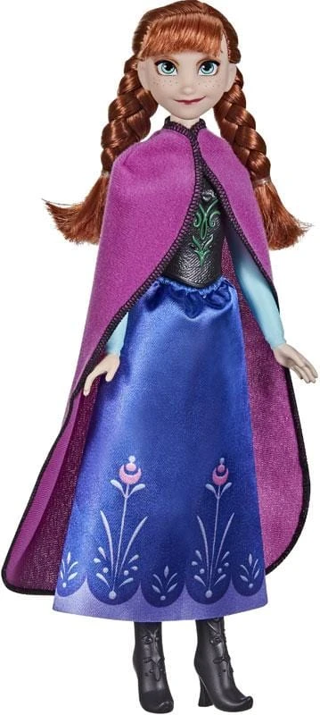 Disney Frozen Anna, bambola da 30cm della principessa. Anna è fieramente leale, determinata e coraggiosa. I bambini possono ricreare le scene di Frozen di Disney con questa bambola Anna, completa di lunghi capelli rossi raccolti in due graziose trecce. Indossa il suo completo da viaggio con accessori per bambole alla moda: un mantello e un paio di scarpe. +3Anni