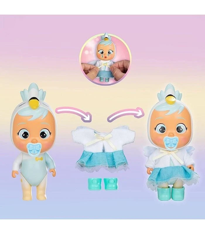 Cry babies Magic Tears Nuova Serie Dress Me Up, sono più di 8 Bamboline da collezionare con tantissime sorprese! Ogni Personaggio del Cartone ha la sua casetta e i suoi accessori, fai bere l’acqua alla tua bambolina grazie al suo biberon magico, premi il pancino e piangerà lacrime vere! Nuova Confezione che include abitini e scarpine, nuova serie, trova l’accessorio Raro! Vendita unitaria in assortimento, App inclusa. Prodotto a sorpresa Imc Toys. +3 Anni