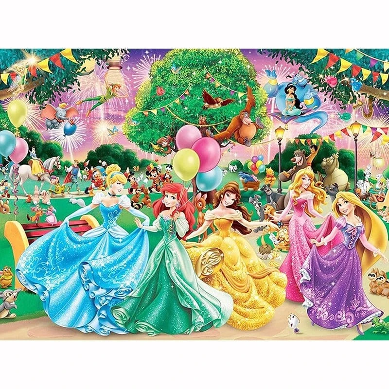 Puzzle Principesse Disney 1000 pezzi, fantastico Puzzle che raffigura tutte le principesse Disney durante una Festa con I Fuochi d’artificio.