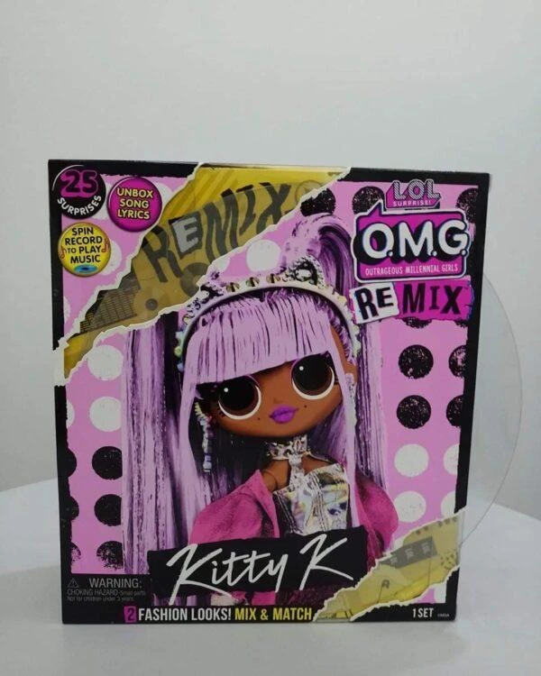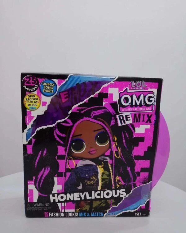 OMG sta per “oltraggiose millenial girls”. Le bambole LOL O.M.G Remix sono sorelle maggiori dei bambini LOL delle prime quattro serie LOL Surprise. Hanno abiti e accessori alla moda, acconciature eleganti e luminose, La differenza della scatola LOL Surprise Remix è che è musicale! Molto interessante, cosa significa? Ogni Bambola Rappresenta un genere Musicale. I personaggi sono : Lonestar-HoneyLicious-Pop B.B-Kitty k.