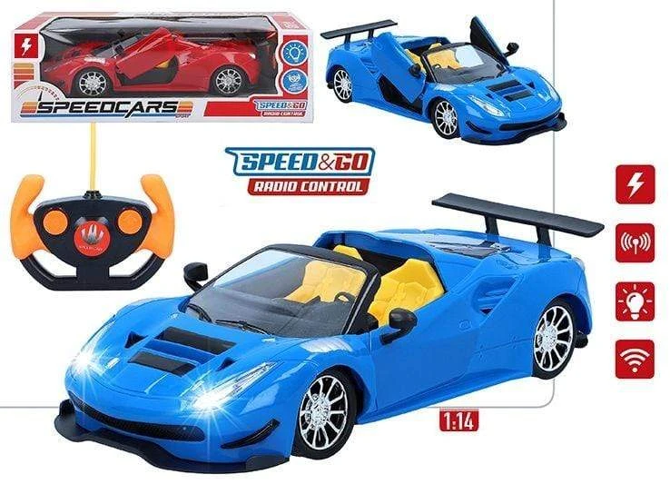Macchina telecomandata con Porte Apribili, radiocomando Scala 1:14. Auto R/c Sportiva con Fari e Stop Funzionanti, necessita di Batterie Stilo AA (non Incluse), Vendita in Assortimento di Colori. Età +8 Anni.