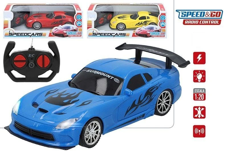 Macchina Telecomandata per Bambini, R/c Radiocomando Scala 1:20. Macchina R/c Sportiva con Fari e Stop Funzionanti, necessita di Batterie Stilo AA (non Incluse). Età +4 Anni, vendita in assortimento di Colori.