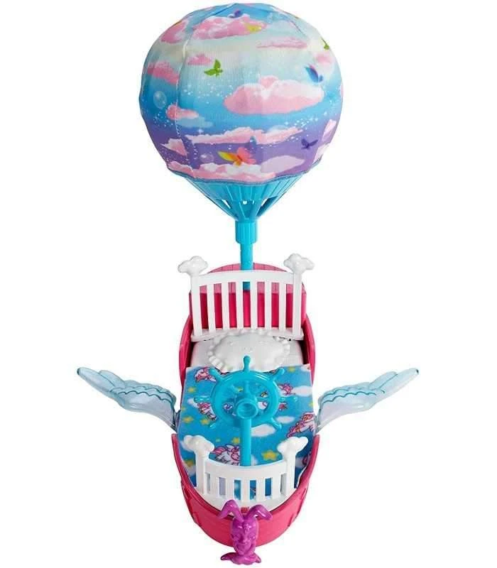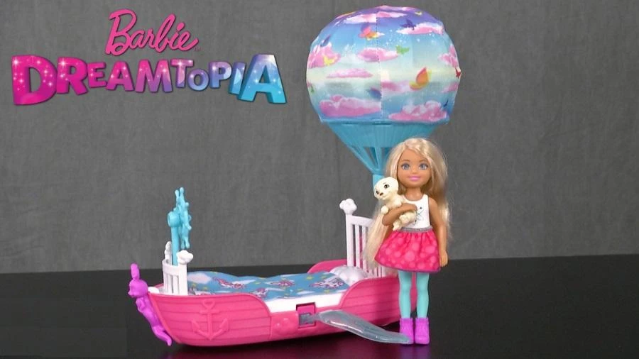 Salta a bordo con Barbie Dreamtopia Chelsea e la sua nuova magica Barca dei Sogni! il Battello magico di è dotato di una ruota nello scafo che fa ruotare la mongolfiera e sbattere le ali quando si spinge il veicolo su una superficie. La confezione include una bambola di Chelsea, il suo cucciolo e il veicolo magico dotato di mongolfiera e ali.