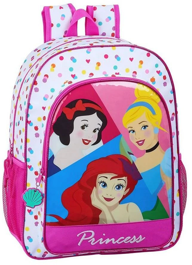 Zaino Principesse Disney, indicato per la scuola Elementare e media! Zainetto con due tasche a zip e spallacci imbottiti, tasche a rete laterali per borraccia. Zaino Elegante e realizzato con materiali di qualità. Dimensioni 42x33x15cm, licenza ufficiale Disney Princess
