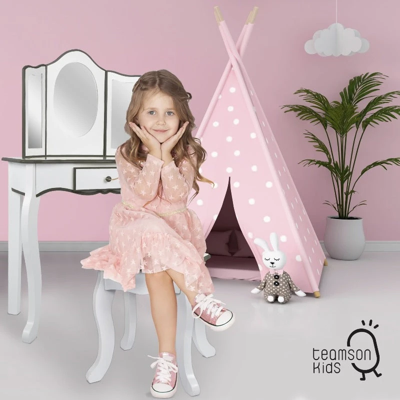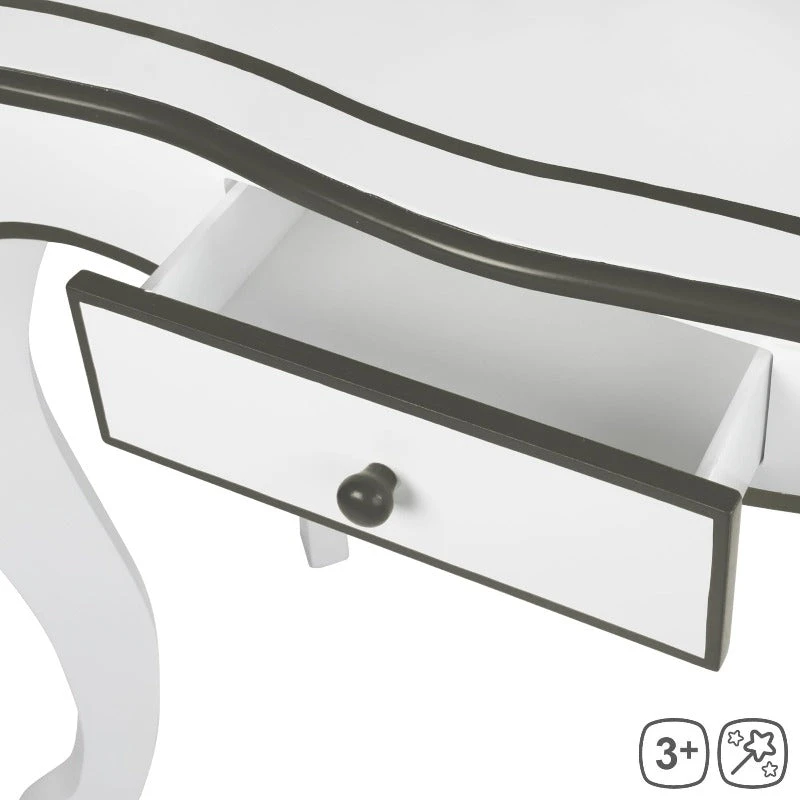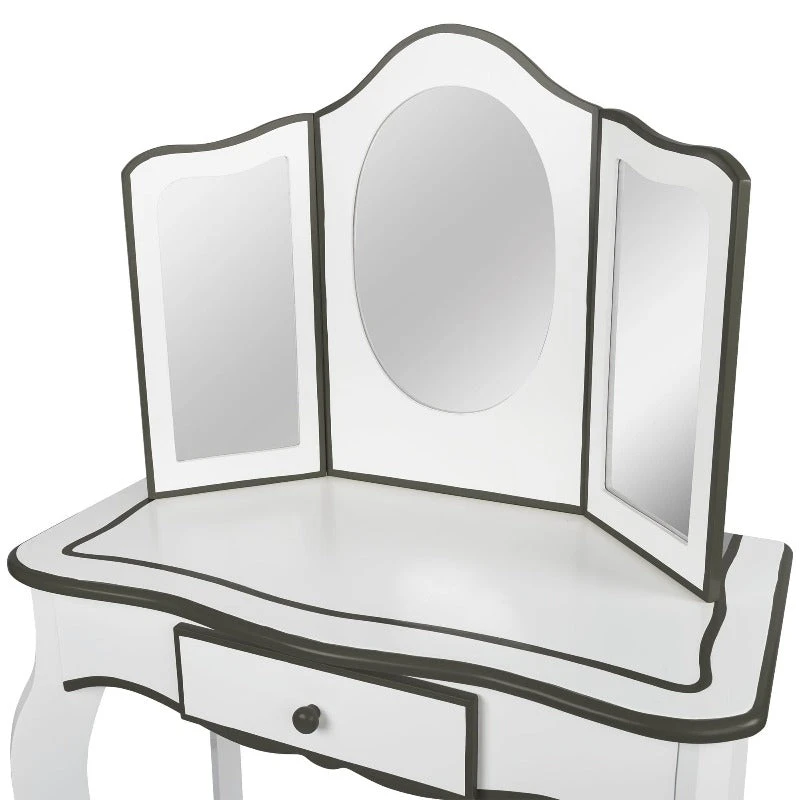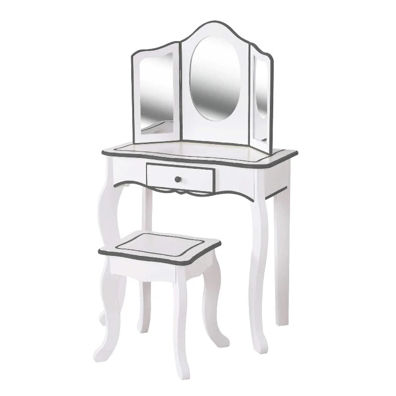 Specchiera con Sgabello in Legno, Toeletta da Trucco per Bambine