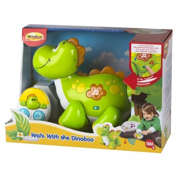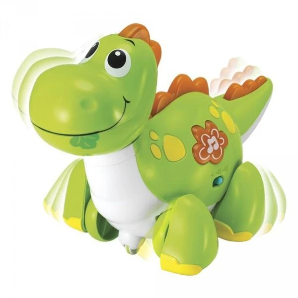 Se il tuo bambino sta imparando a camminare, il cucciolo di dinosauro è il giocattolo ideale. Va avanti e indietro e con un divertente controller puoi controllare il movimento. Se premi la piccola faccia di dinosauro sul telecomando, sentirai il suono di un cucciolo di dinosauro. Mentre cammini, gira la testa e scodinzola e se premi il pulsante illuminato, puoi ascoltare dolci melodie. Inizia a camminare con il cucciolo di dinosauro!